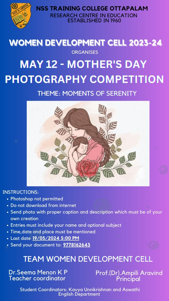 Women Development Cell of the college organised letter writing competition - ' Letter to your mother ' & Photography competition in connection with Mother's Day celebration on May 12, 2024 for B. Ed, M. Ed students & PhD research scholars.